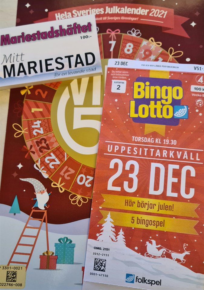 Nu går tiden fort inför julen. En del föräldrar har frågat efter mariestadshäfte,uppesittarlotter och kalendrar. Mariestadshäftet 100kr Häftet blir bara bättre för varje år där dom flesta restauranger är med som är kul och mångas favorit mio som har ett kanonerbjudande. Uppesittarlotter Är lika givet att spela som kalle anka på julaften så vi har mycket lotter hemma både 100kr 200kr 300kr Julkandrar 100kr Är många som ger bort inför julen och kanske redan till fars dag i helgen där man skrapar fram en ruta varje dag i december fram till julafton. Föreningen är tacksam om ni gör beställningarna hos oss så ta kontakt med föreningen så hjälper vi er efter önskemål. Tack på förhand!🙏 Mariestads BK 12 nov 2021 0kommentarer